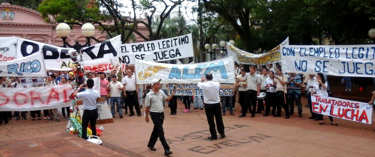 Posadas (Martes, 6 de diciembre) Mientras el Congreso Nacional era escenario de frenéticas negociaciones por las modificaciones en el Impuesto a las Ganancias que se aplican en los salarios de los trabajadores, nuestra ciudad capital fue también escenario de la movilización de los sindicatos del juego de la República Argentina en contra del proyecto del gobierno nacional de imponer un «impuesto al juego» para cubrir el costo fiscal de los cambios en Ganancias. Tanto el proyecto oficial como el alternativo de Sergio Massa, aumentaban la carga sobre las empresas que explotan el juego además de establecer una emergencia por tres años para las tragamonedas.