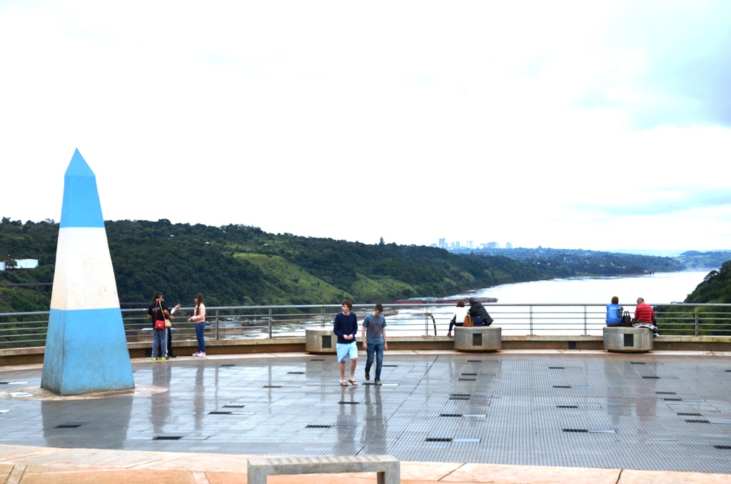 En la foto se observa el hito argentino de la triple frontera, el espacio que comparte Argentina con Brasil y Paraguay, en la desembocadura del río Iguazú en el río Paraná.