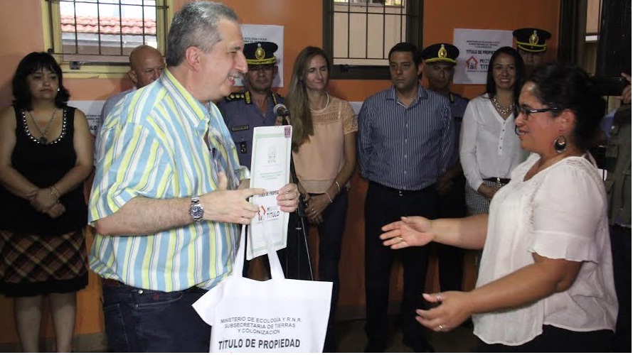 Luego la comitiva oficial, encabezada por el mandatario, se trasladó a la ciudad de Puerto Iguazú con el fin de asistir a la entrega de 170 soluciones de tierras a pobladores locales, y de los municipios aledaños de Bernardo de Irigoyen, Puerto Libertad, San Antonio y San Pedro.