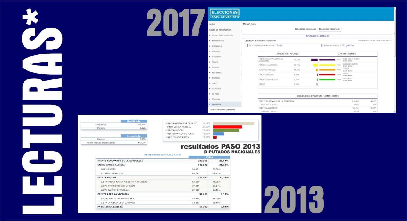 Posadas (Lunes, 14 de agosto) Las elecciones de medio tiempo que, sólo son convocadas para renovar bancas parlamentarias tienen en la Argentina su propia peculiaridad. La gente se suelta más que en las generales cuando debe elegir presidentes o gobernadores. La lectura de datos para descubrir tendencias, no deben caer en la tentación de comparar peras con manzanas, o si se quiere en una hoja de té con una de yerba mate. Es el error que se comete cuando se comparan elecciones de diferente naturaleza entre sí. Los 41 puntos que obtuvo la Renovación ayer y los 28 de la alianza Cambiemos no son comparables a los 62 con los que los misioneros consagraron a Hugo Passalacqua en 2015. Hay que medirlos, para saber dónde se está parado, con una elección similar: con las paso de 2013.