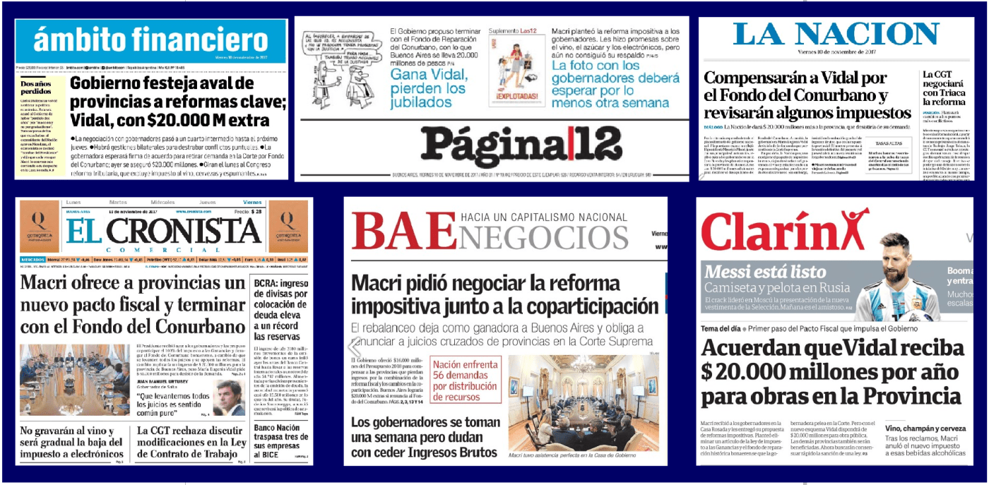 Pero si el abordaje del centralismo porteño omite la tensión objetiva que se establece entre la existencia de impuestos como ingresos brutos y la capacidad del Estado para cumplir con la prestación de servicios, lo que queda afuera de toda consideración es la matriz federal de la organización política Argentina. No se trata sólo de caja, se trata de autonomía en la toma de decisiones. Puede existir toda la predisposición de la Casa Rosada de compensar los recursos que la provincia deja de tener con la baja de impuestos provinciales, pero ese voluntarismo termina incrementando la dependencia financiera de la provincia. No es teórico. Sucedió a partir de los pactos fiscales que Cavallo impuso en los 90 y que a la vez el FMI le impuso a Menem. La descentralización administrativa de los países federales son una traba para la burocracia del Fondo tiene una jerga ofensiva al referirse a las provincias como estados subnacionales. Esta ofensiva de la nación sobre las atribuciones de las provincias fueron negadas por los ministros Dujovne y Frigerio a nuestros cronistas, pero si se leen atentamente los mensajes subyacentes en el abordaje del tema en los diarios porteños se descubre que al menos hay una presión muy fuerte. Está claro en Clarín. Veamos: