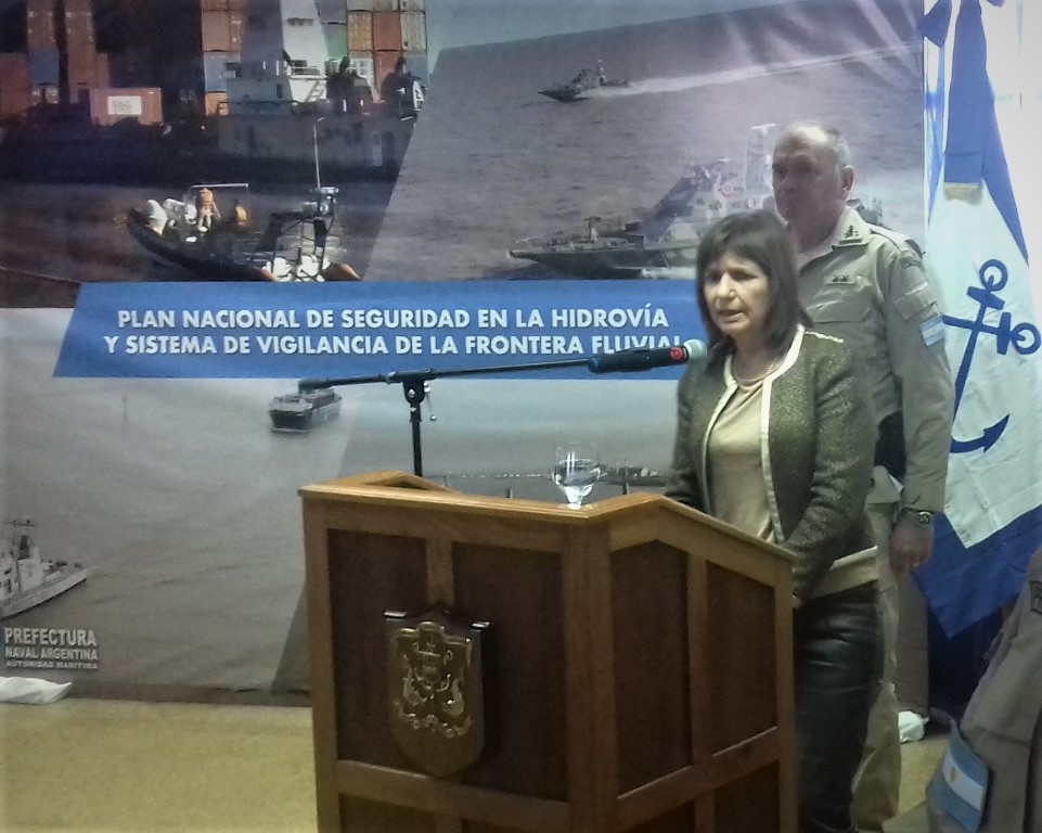 En la presentación del Plan Nacional de Seguridad de la Hidrovía y el Sistema de Vigilancia de Frontera Fluvial, Bullrich señaló que se trata de la segunda etapa. “En estos dos años y ocho meses que nos ha tocado el Ministerio de Seguridad y una consigna muy clara que nos planteó el Presidente, que es el combate al crimen organizado y una especial dedicación al combate del narcotráfico”, expresó.