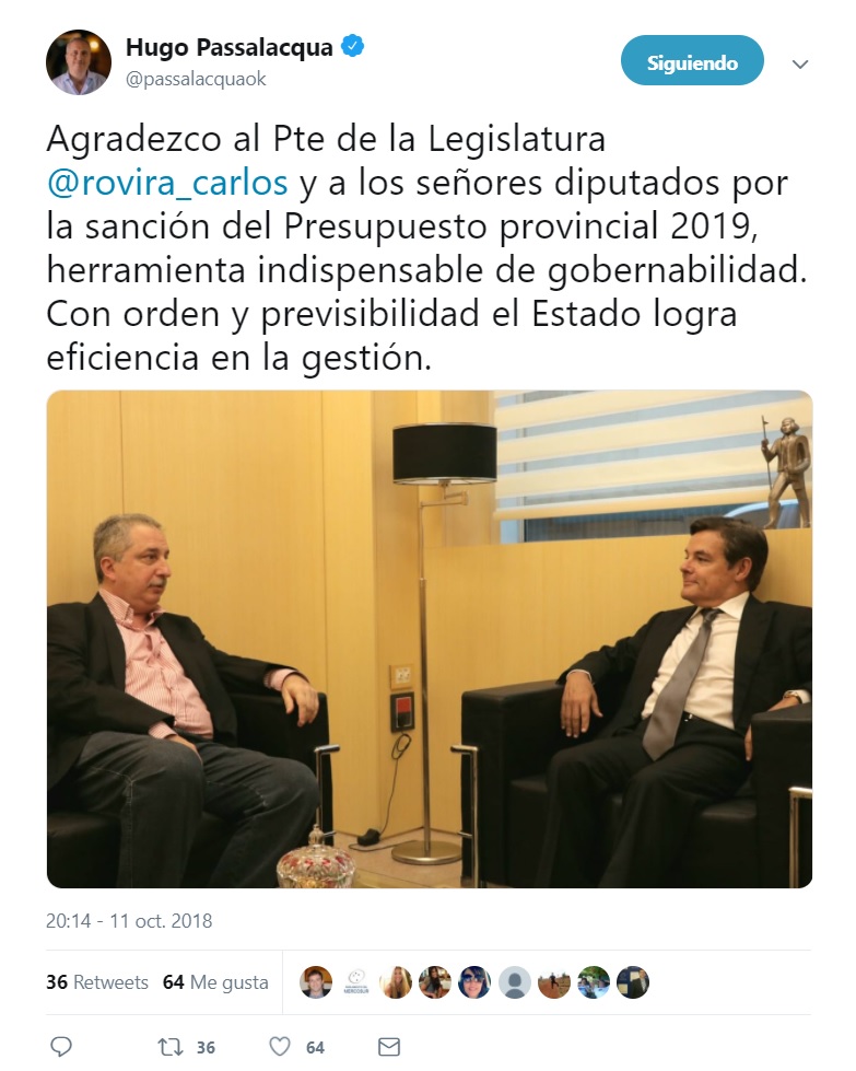 Misiones es la primera provincia en tener aprobado su Presupuesto y así es distinguido en los medios nacionales. Passalacqua agradeció a los diputados la sanción con lo que resalta su significación política ya que tuvo el respaldo de todo el arco de representación. El Pays y el diputado Cácerez de la Renovación votaron en contra de la ratificación del pacto fiscal.
