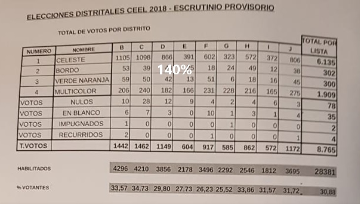 Eldorado (Domingo, 4 de noviembre) La lista Celeste encabezada por Alberto Romero se impuso hoy en forma contundente en las elecciones de la Cooperativa Eléctrica. Obtuvo 6.135 votos que representan el 70% del total, triplicando en cantidad de votos a la lista Multicolor que tuvo el respaldo explícito del diputado de la UCR Gustavo González que es el gran derrotado de la jornada ya que otros sectores del partido y del PRO no intervinieron en la campaña. La Multicolor obtuvo 1909 votos lo que llega al 21% del total, el restante 9% se repartió en listas independientes.