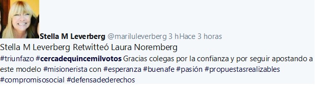 Los días antes de la convocatoria, Leverberg fue el blanco de los trolls misioneros. Incluso llegaron a informar denunciando que utilizaba el sindicato para presionar por un lugar en la fórmula de la Renovación en las elecciones generales del año que viene. En declaraciones a Radio Spika de Eldorado, el jueves antes de las elecciones fue enfática: “no tengo intención de ser candidata a Vicegobernadora”. En una charla con Alejandro Spivak descartó la versión y subrayó: “mis elecciones son mañana en el gremio. Descarto alguna otra intención de intentar ser candidata a vicegobernadora. Pido que quede bien claro no busco cargos electivos dentro del Frente Renovador de la Concordia Social, partido al cual pertenezco”.