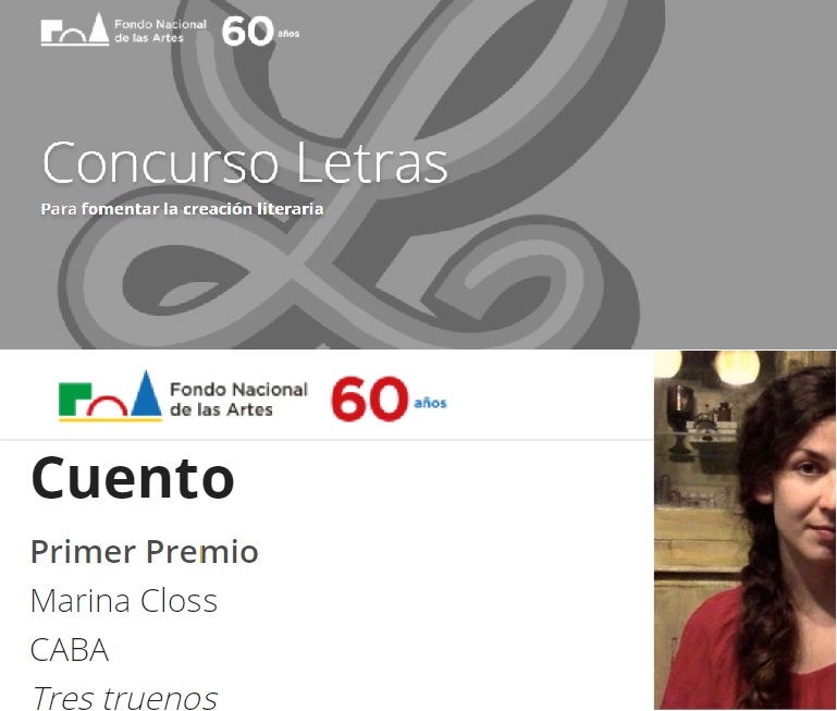 La misionera Marina Closs ganó el Primer Premio del Concurso de Letras del Fondo Nacional de las Artes en el género Cuento. El jurado que tomó la decisión estuvo formado por Florencia Abbate, Luis Sagasti y Selva Almada. Se trata de uno de los premios más importantes a nivel nacional, el cual había ganado recientemente, en género novela, otro escritor misionero, Osvaldo Mazal.