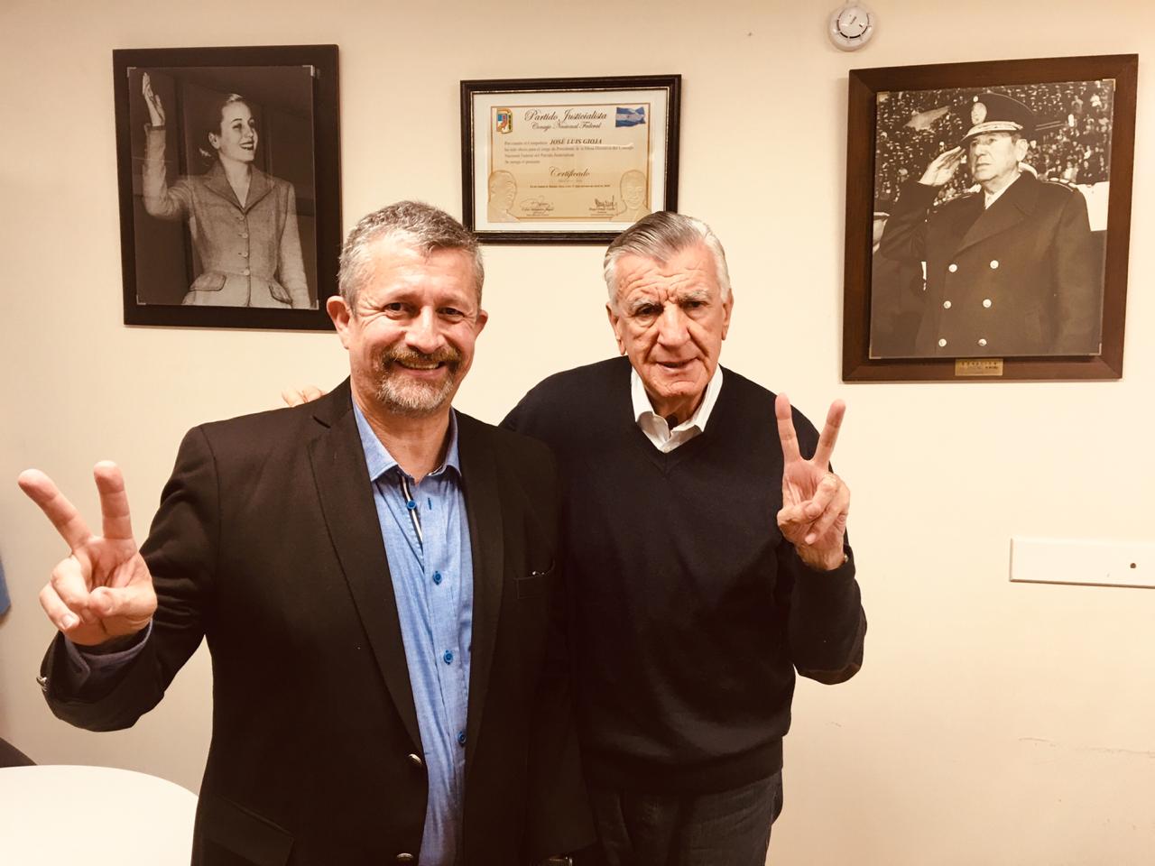 Miércoles, 22 de mayo de 2019. Rafael Pereyra Pigerl se reunió con José Luis Gioja, presidente del PJ Nacional, con el objetivo de ratificar la postura del PJ Misiones. El objetivo es la consolidación de un gran frente electoral que sume el mayor número de voluntades, pensando en las elecciones del próximo mes de octubre. El dirigente peronista misionero publicó en sus redes la foto con el sanjuanino y el siguiente texto:
