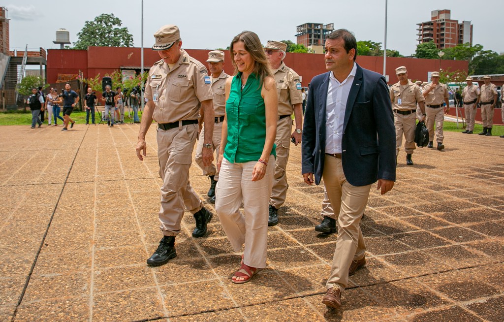La funcionaria de Nación estuvo acompañada por la titular de la Unidad Gabinete de Asesores, María Cecilia Rodríguez; el secretario de Seguridad y Política Criminal, Eduardo Villalba, e Iván Poczynok de la Dirección de Inteligencia Criminal. También estuvieron los diputados nacionales Ricardo Wellbach y Flavia Morales; el Jefe de la Prefectura Naval Argentina, Mario Farinón, y el director de Inteligencia e Investigación Criminal, Prefecto Mayor Rogelio Pellegrino.