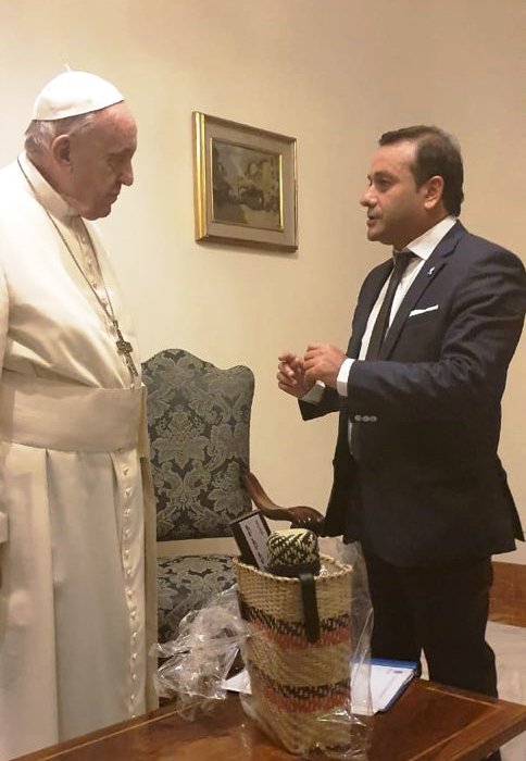 felicitación del Santo Padre por el trabajo realizado en ese campo. Además, Herrera Ahuad le hizo entrega al religioso de una carpeta a modo de documento, en la que se detallan los trabajo realizados en la provincia sobre la agricultura familiar y la educación disruptiva, ejes que dispararon en la conversación el tema de la economía y lo que significan estos conceptos y áreas de trabajo.
