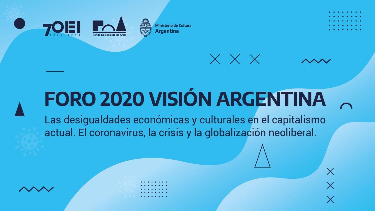 El Foro 2020 Visión Argentina propone un espacio de reflexión a través de conferencias, cursos y mesas redondas de las cuales participarán intelectuales argentinos y extranjeros, sobre temas centrales de la Economía, las Relaciones Internacionales, la Historia, la Política, la Cultura y el Arte, en el contexto de esta nueva realidad.