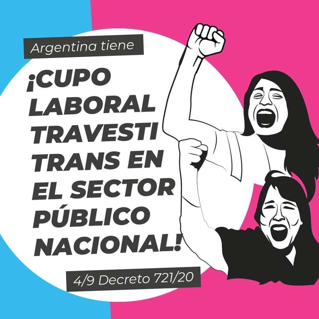Viernes 4 de septiembre de 2020 (Télam). El Gobierno nacional estableció en el ámbito del sector público nacional que los cargos de personal deberán ser ocupados en una proporción «no inferior al uno por ciento», por personas travestis, transexuales y transgénero que reúnan las condiciones de idoneidad necesarias, y en cualquiera de las modalidades de contratación vigentes.