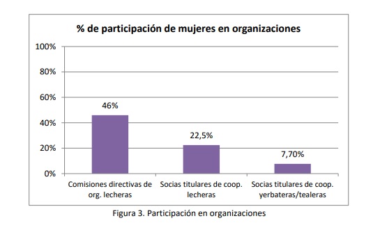 Al mismo tiempo, hay producciones que históricamente han sido desarrolladas por las mujeres pero hacia adentro de los predios, como lo son el caso de la horticultura o la lechería. Es decir, que tanto la titularidad como la participación en espacios de decisión, en cuestiones públicas y sociales sigue estando en mano de los varones.