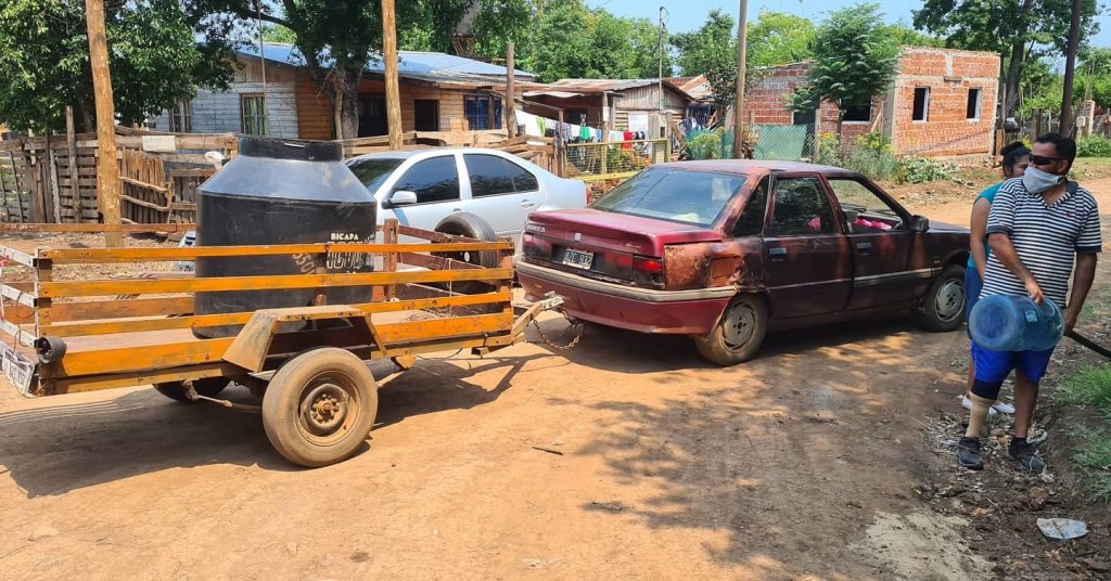 La situación actual obliga a las familias a buscar agua para consumo en otros barrios pero también para sostener las huertas comunitarias agroecológicas que son el sustento económico junto a la producción de animales.