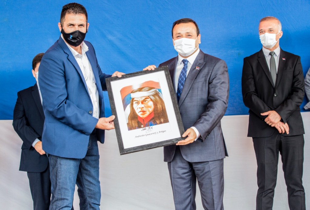 Lunes 30 de noviembre de 2020 (Prensa de Gobierno). El gobernador Oscar Herrera Ahuad presidió, en la localidad de Salto Encantado, el acto aniversario del nacimiento de Andrés Guacurarí, prócer misionero. Además recordó el Día de la Bandera de Misiones, creada por Gervasio Artigas. El mandatario destacó la importancia de Andresito “en la unión de todos los misioneros para que seamos libres y soberanos”.