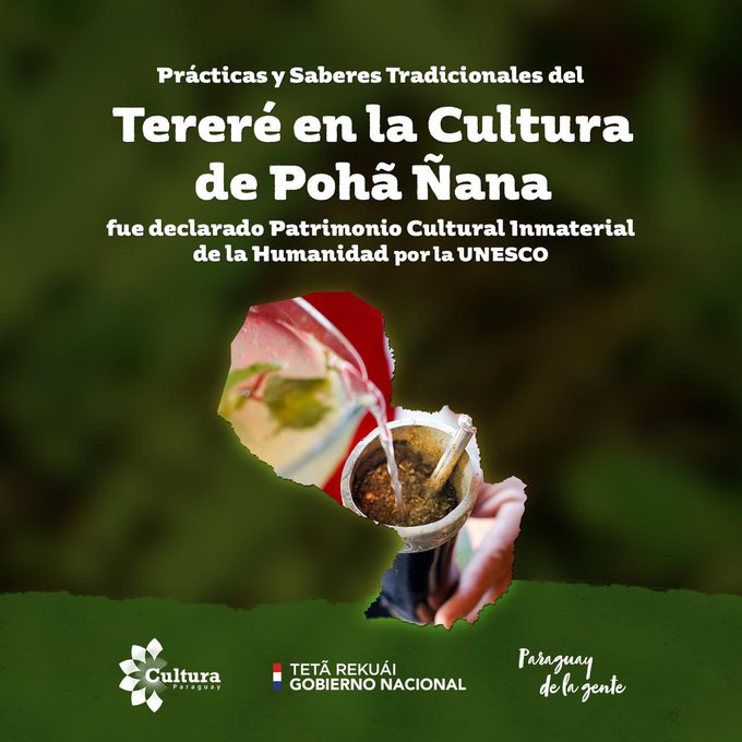 Paraguay, que nombró por ley al tereré como su bebida nacional, buscaba hace varios obtener el título de Patrimonio Cultural Inmaterial y este jueves, a través de su candidatura bajo la identificación «Prácticas y saberes tradicionales del tereré en la cultura del pohã ñana, bebida ancestral guaraní en Paraguay», lo logró.