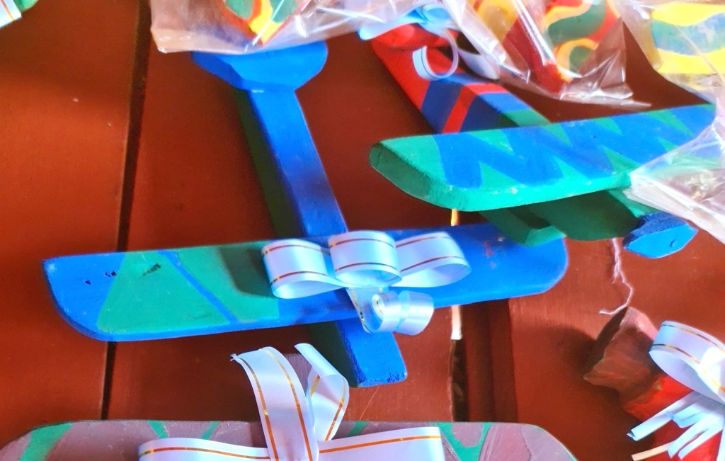 «También participamos de la feria comunitaria una vez a la semana; desde hace más de un mes estamos preparando juguetes para llevar de regalo a niños y niñas de los barrios más vulnerables de Posadas, y también en algunos merenderos del resto de Misiones. Hacemos muñecas, osos, vinchas, avioncitos y herramientas de madera, entre otras cosas, reciclando y fabricando».