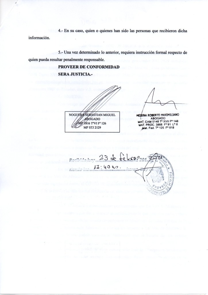 “A través de su representante legal, LVM expresó que: “Evidentemente quien pergeñó esta noticia tiene la intención de atribuir responsabilidad al diario que represento sin ser éste realmente el autor material e intelectual de la publicación, con lo cual estaríamos en presencia de varios delitos”.