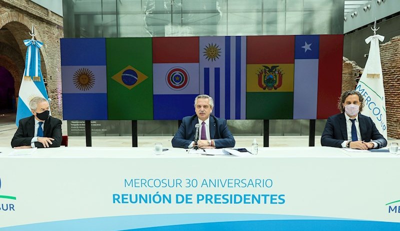 Los presidentes de Brasil, Argentina, Paraguay y Uruguay, países fundadores del Mercosur, así como de Chile y Bolivia, que son asociados, festejaron este viernes los 30 años del bloque en un acto virtual en el que se expresaron diferencias en torno a la estrategia conjunta de apertura comercial.