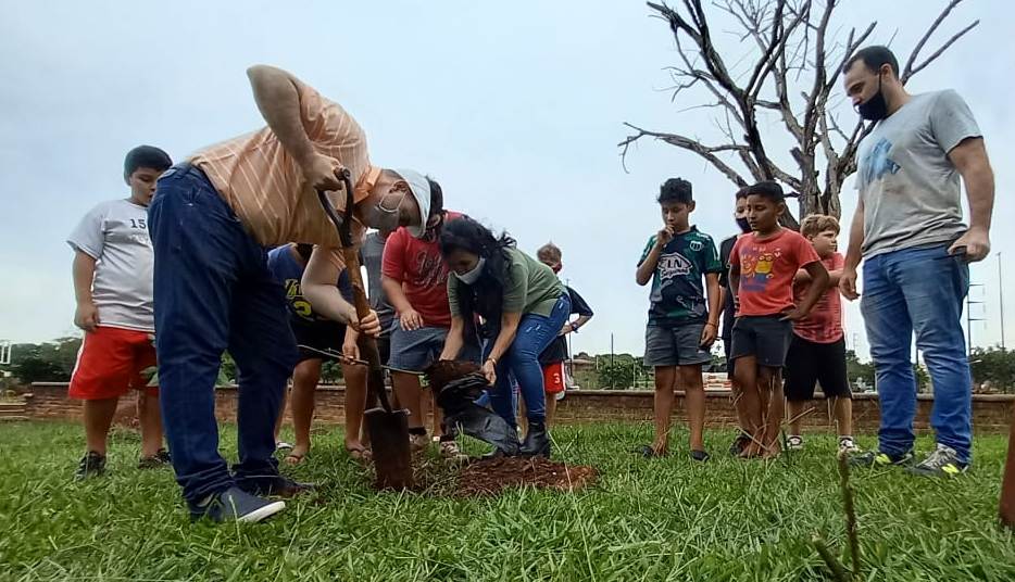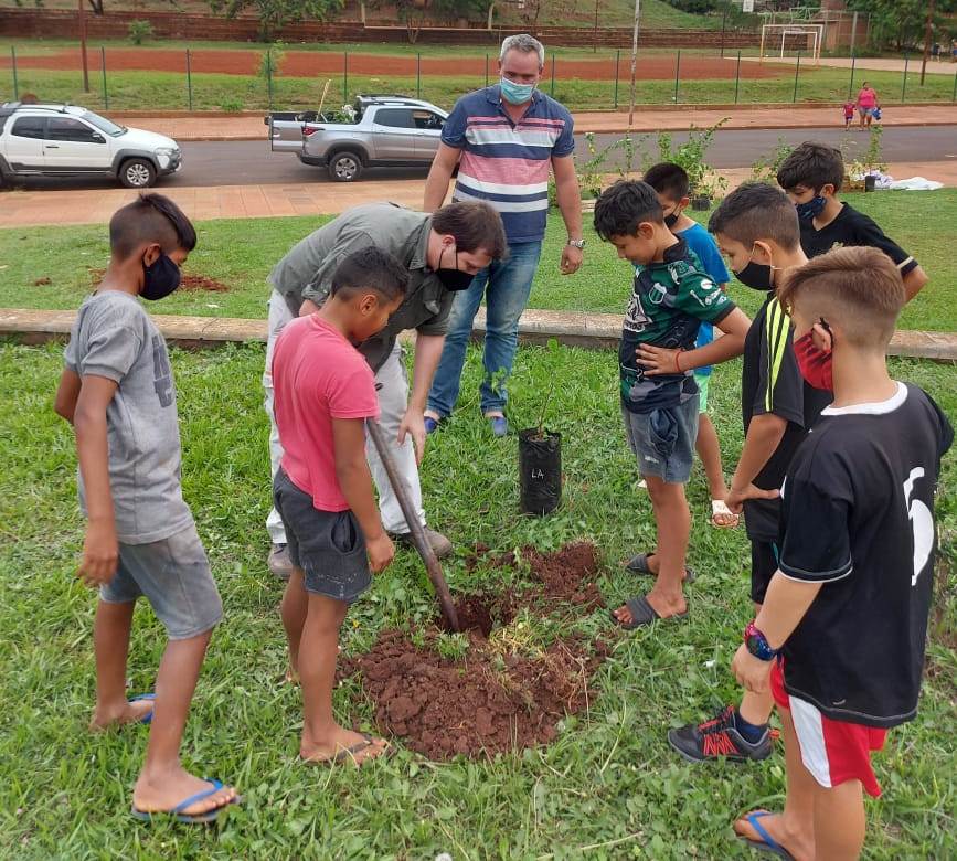 Viernes 23 de abril de 2021. Un grupo de jóvenes ingenieros forestales de Misiones impulsan el Primer Arbolado Sustentable y Sostenible con diseño del paisaje del país, que comenzó a tomar forma este 22 de abril, Día Internacional de la Tierra, en el barrio A-4 de Posadas, en una siembra de especies nativas que realizaron en conjunto con la comuna local, que planificó la actividad.