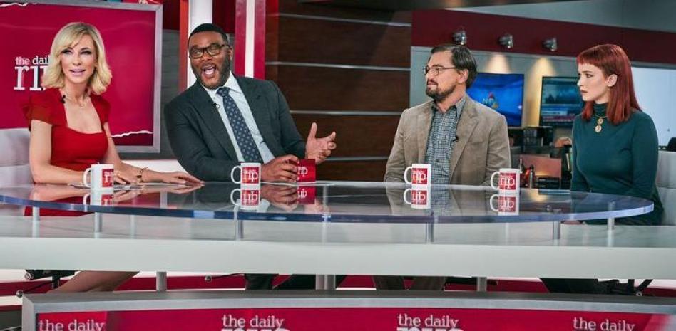 Las situaciones tranquilamente podrían ocurrir en la vida real, como han demostrado estos larguísimos meses pandémicos y la legión de antivacunas que ven la mano negra de Bill Gates y cucharas pegándose a los cuerpos de quienes pusieron el brazo. Pero, en este caso, ocurren en la ficción, más precisamente en No miren arriba, que llegó este viernes a Netflix luego de su fugaz paso por las salas argentinas, justo en vísperas del inicio de la temporada de alfombras rojas de Hollywood. La empresa de la N roja tiene el Oscar entre ceja y ceja desde que descubrió que no hay campaña de marketing capaz de comprar el prestigio que para ciertos sectores de la audiencia significa ver decenas de estatuillas doradas en el póster. Por eso no se anduvo con chiquitas a la hora de armar un plantel actoral deluxe que incluye a Leonardo DiCaprio, Jennifer Lawrence, Meryl Streep, Jonah Hill, Mark Rylance, Tyler Perry, Timothée Chalamet, Ron Perlman, Ariana Grande, Kid Cudi y Cate Blanchett, todos bajo la dirección del también guionista Adam McKay. El realizador y gran parte del elenco dieron una conferencia de prensa virtual para medios de todo el mundo, entre los cuales estuvo Página/12.