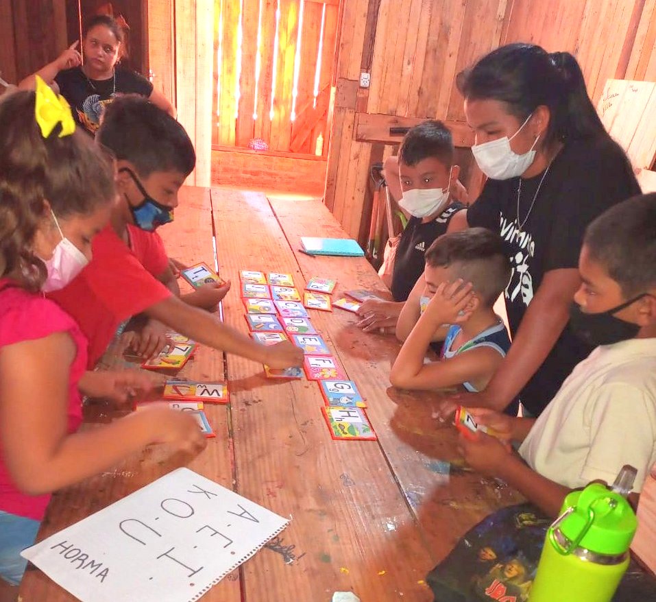 En el Km 28 las docentes enseñan en la sede de la iglesia Dios es Amor, y ahí están Silvia Arzamendia; Nélida Miño y Brisa Arzamendia, estudiante del último año de la secundaria, «una jovencita con compromiso y una vocación solidaria muy grande. Y todas trabajan con la coordinación general de Anahí Arzamendia», señaló Silvia.