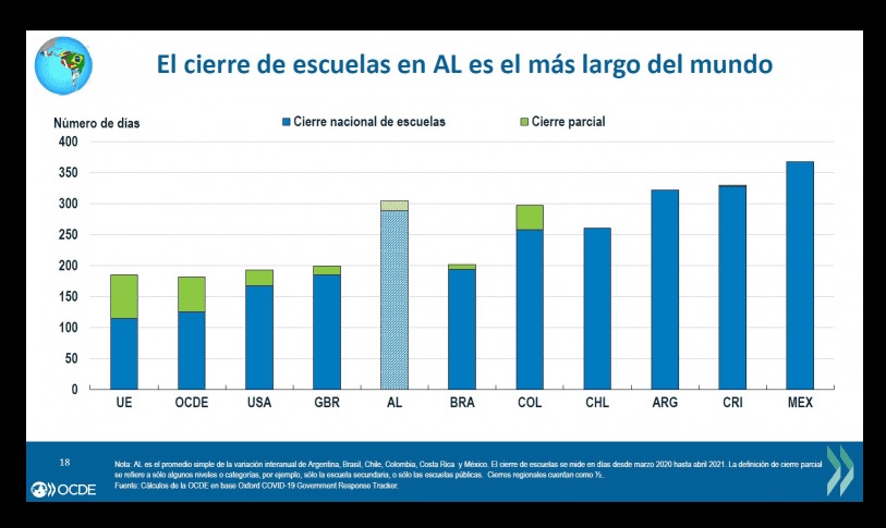 Argentina se destacó entre los países que más tiempo estuvieron con las escuelas cerradas: 322 días (corridos), superado en América Latina por los 368 de México y 328 de Costa Rica.