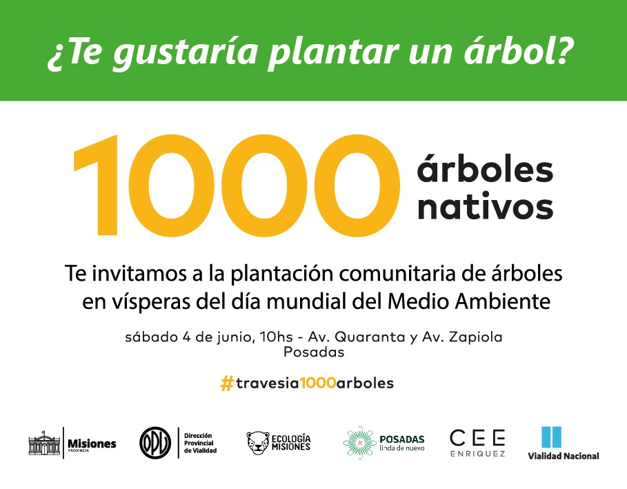 La arborización tendrá lugar este sábado 4 de junio, a partir de las 8, organizado por la Dirección Provincial de Vialidad (DPV); el Ministerio de Ecología y Recursos Naturales Renovables; la Municipalidad de Posadas; la Dirección Nacional de Vialidad y la empresa Enríquez Construye, quienes convocaron a la comunidad a participar de esta acción junto a organizaciones ambientalistas e instituciones educativas.