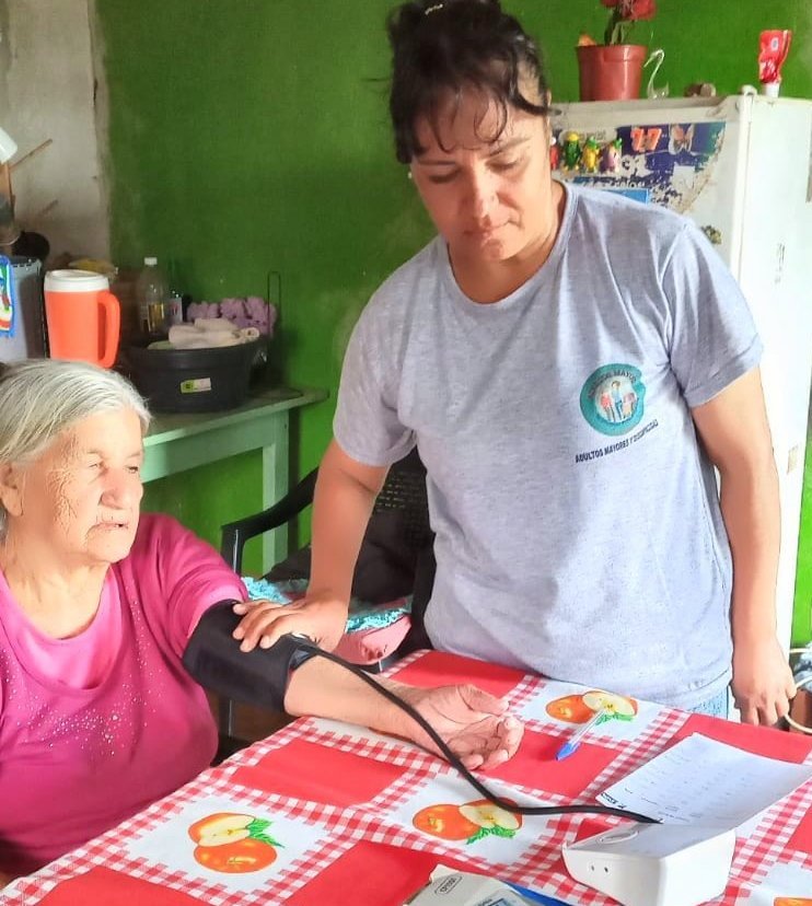 Ellas se encargan de la medicación de las y los adultos, de su higiene personal, la limpieza de sus hogares y también de las compras diarias. Además, trabajan articuladas con las promotoras de salud para hacer visitas de controles de presión y curaciones cuando las necesitan.