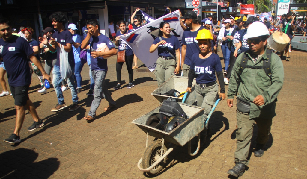Masiva movilización de la UTEP en Misiones en defensa de derechos conquistados por trabajadores. En Posadas se concentraron frente a la Casa de Gobierno.