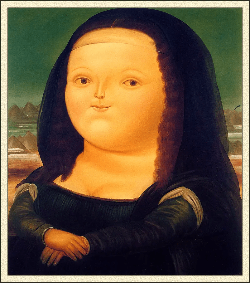 También con su estilo característico, Botero pintó en 1959 su propia versión de la Mona Lisa, de Leonardo Da Vinci, pero mostró a La Gioconda como una adolescente. Se trata de la «Mona Lisa a los 12 años».