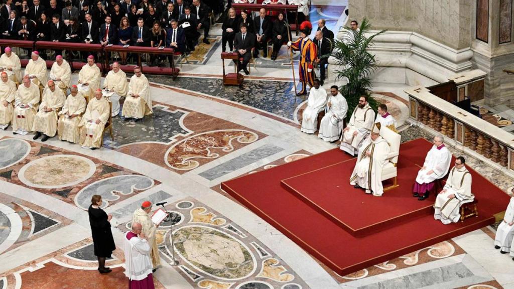 Miles de personas se congregaron en la Basílica de San Pedro para la celebración eucarística de casi dos horas de duración presidida por el pontífice y en la que estuvo, entre otras autoridades, el presidente Javier Milei, que fue buscado por muchos fieles para sacarse fotos.