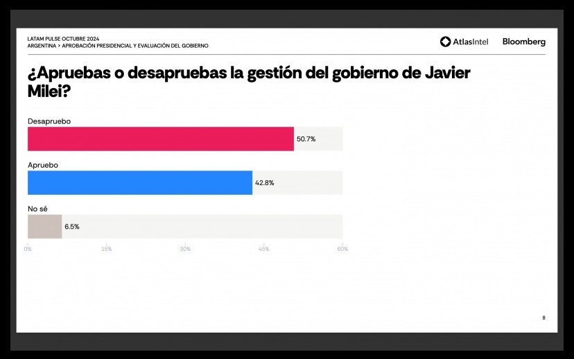 La consultora brasileña Atlas y Bloomberg -encuestadora que vaticinó el triunfo de Milei- lanzaron un trabajo conjunto en Argentina, Brasil, México, Colombia y Chile. La aprobación de Milei está por debajo de Lula y Sheinbaum.