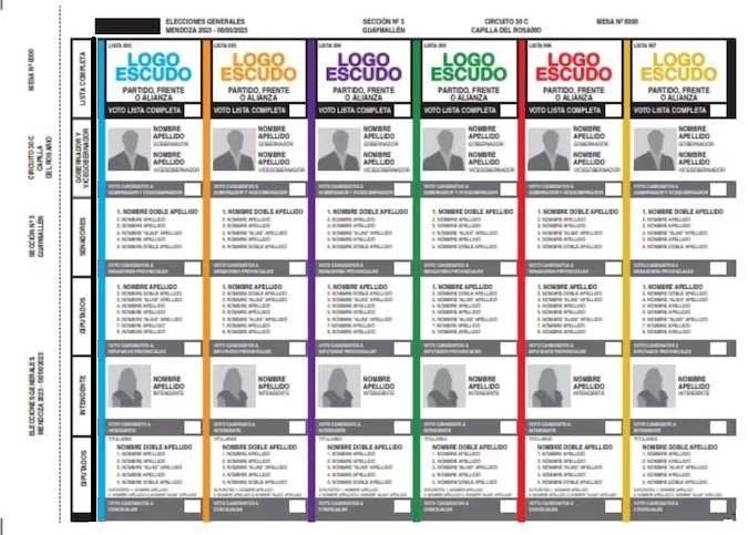 El diseño de la boleta fue aprobado por el Ministerio del Interior, a través de la Dirección Nacional Electoral (DINE), que será responsable de su impresión y distribución en todo el país. Los candidatos a senadores nacionales estarán identificados con nombre, apellido y fotografía a color, mientras que las listas de diputados deberán incluir, como mínimo, los nombres y apellidos de los cinco primeros candidatos.