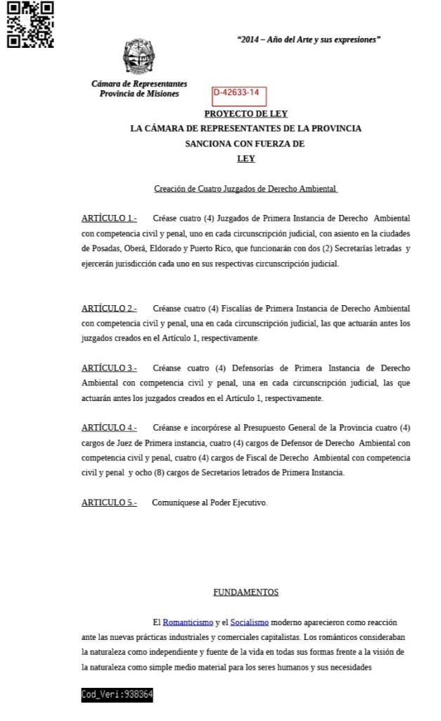 El proyecto presentado instaba, por primera vez en Misiones, a la protección del medio ambiente de manera eficaz con la creación de Juzgados de Delitos Ambientales, que impartieran justicia únicamente en el área que les compete.