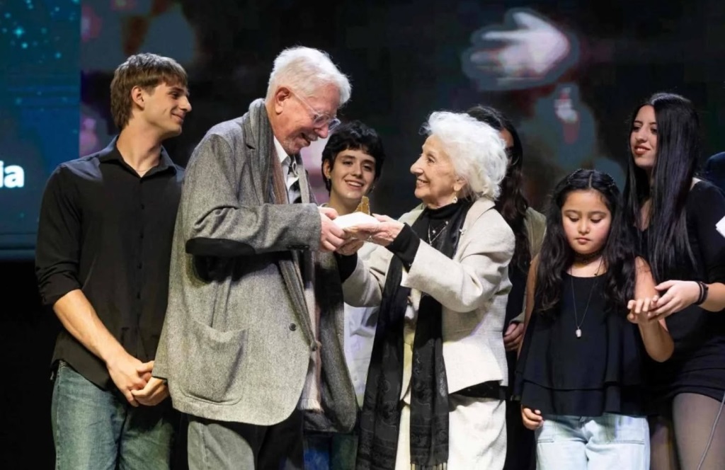 El año pasado reconocimos a Puenzo con el Premio “Abridores de caminos”, por su aporte, su compromiso y su amistad, y allí, acompañado por cinco de sus nietos, evocó aquellos encuentros con Estela y Rosa y dedicó su galardón a “todos esos chicos y chicas que aparecían en las fotos reales” que le dieron las Abuelas para la película.