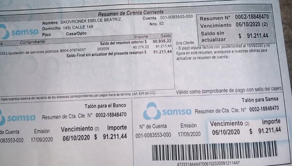 Seguir leyendo «Reclamos por exorbitantes facturaciones de Samsa»En la Chacra 145 de Posadas, hay facturaciones que van desde 28 mil a 91 mil pesos. Pese a los reclamos, no tienen respuestas, aseguran.