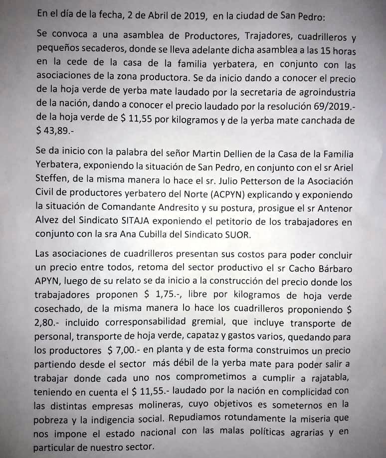 Acordaron la distribución de los 11,50 pesos que fijó el laudo. Pero consideran que el monto los somete a la pobreza. Vuelven a lamentar el papel que juega en Inym en beneficio de la industria y del precio en góndola en los supermercados del país central, en detrimento de la producción. Seguir leyendo «La asamblea yerbatera no definió acciones de protesta»