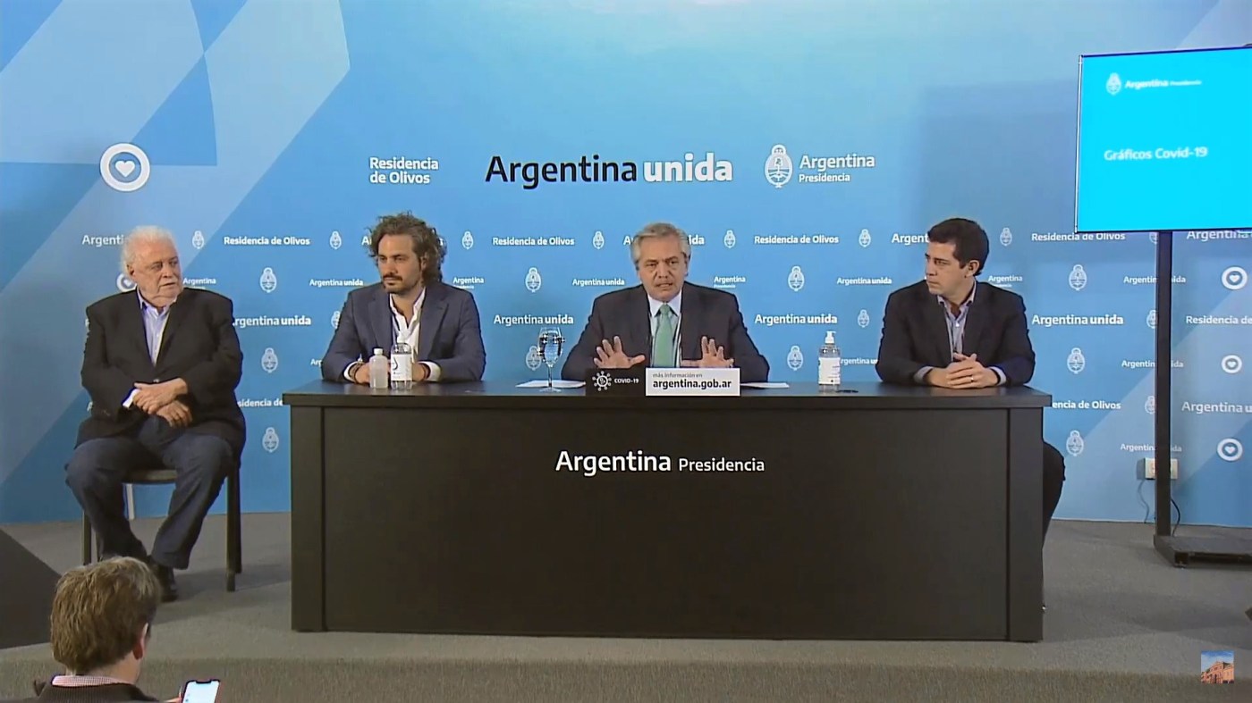 El presidente Alberto Fernández sumó este martes el respaldo de los 23 gobernadores y del jefe de Gobierno porteño, Horacio Rodríguez Larreta, para extender el aislamiento por el coronavirus y flexibilizar «de a poco» algunas actividades a partir del próximo lunes 13, aunque advirtió que «hay que evitar el relajamiento» con la medida. Seguir leyendo «La cuarentena se extendería hasta el jueves 23 de abril, con alguna flexibilización»