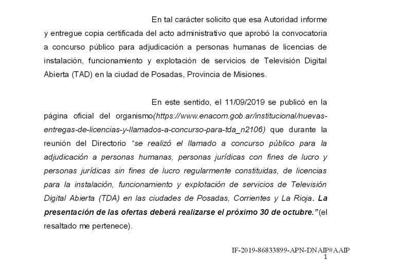 El Ente Nacional de Comunicaciones no informó sobre el llamado a concurso para entregar licencias de radio y televisión en Posadas, Corrientes y La Rioja no publicó la resolución en el Boletín Oficial. Desde Posadas, el titular de Canal 4 apeló a la Ley de acceso a la Información Pública para conocer las bases del concurso que finaliza el 30 de octubre y que no fueron informadas. Seguir leyendo «Temen que el Enacom “remate licencias de medios entre amigos”»