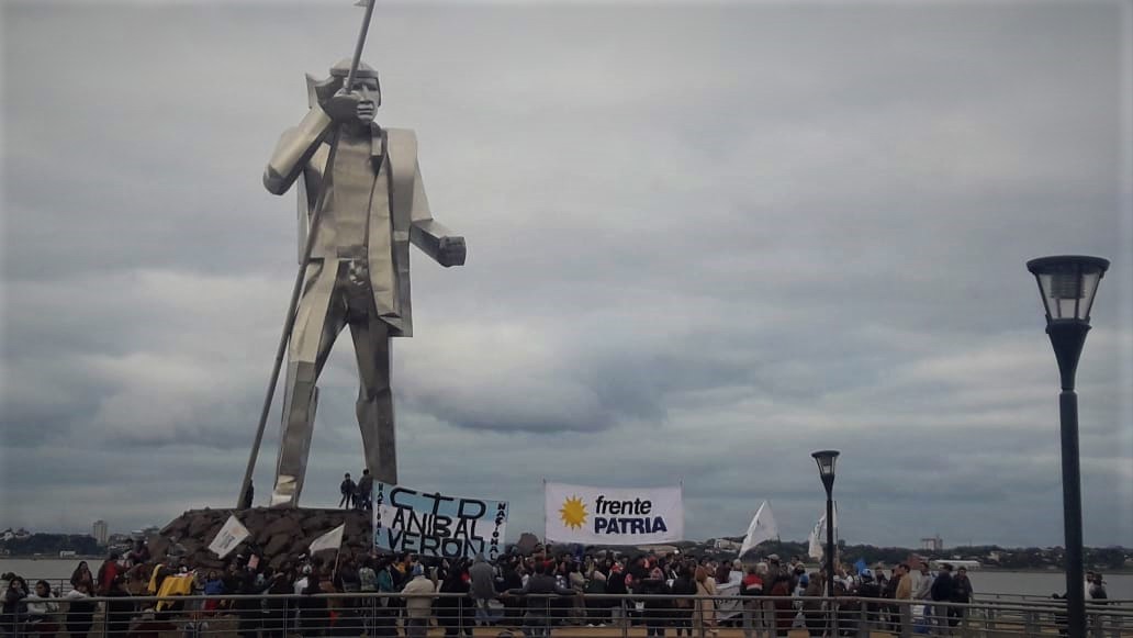 Bajo la consigna “la Patria no se rinde” como continuidad de la “Patria está en peligro” del 25M, organizaciones de base de Posadas se sumaron hoy a las manifestaciones que a lo largo y ancho del país se pronunciaron en contra del acuerdo con el FMI. Bajo el alto valor simbólico de la estatua de Andresito en la costanera, hicieron un llamado a la unidad para vencer en las urnas al “proyecto antinacional de Macri”.