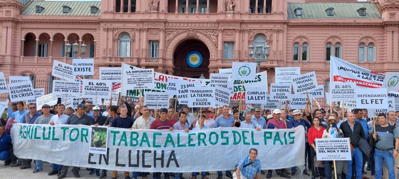 Seguir leyendo «Reclamo tabacaleros con manifestación en Buenos Aires»Se convocaron frente a palacio de Tribunales y la AFIP. Agricultores y dirigentes de las siete provincias tabacaleras exigieron que cesen los privilegios para el 40% de la industria que no paga impuestos y desfinancia el FET. El martes estarán en el Congreso Nacional.